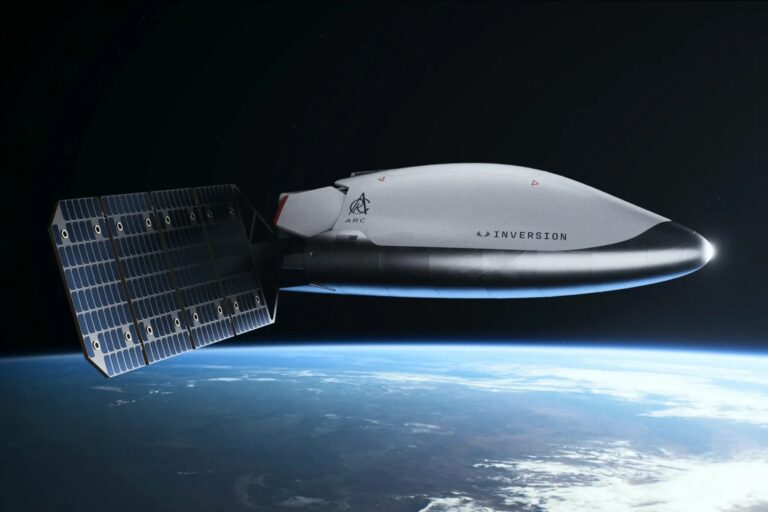 Inversion Space revelou sua nave Arc em 2 de outubro de 2025, descrevendo-a como o primeiro veículo orbital de entrega do mundo. A empresa afirma que a Arc poderia entregar até 500 libras de carga em quase qualquer ponto do planeta em menos de uma hora.