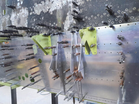 O trabalho mais recente de Lowen concentrou-se nas numerosas seções de longarinas. Após o jateamento e a inspeção, quaisquer peças com corrosão superficial tiveram esta removida e nivelada. Danos por impacto afetaram algumas longarinas, no entanto. Lowen conseguiu endireitar aquelas com dobras leves, mas qualquer peça com dano mais sério exigiu emenda (conforme o Manual de Reparo Estrutural) ou remanufatura. Uma vez devolvidas à condição aeronavegável, as longarinas receberam uma demão de primer.