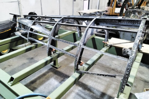 Nigel Lowen continuou seus esforços na restauração da parte traseira inferior da fuselagem do SBD. No artigo anterior que cobria este subconjunto (Atualização 82), Lowen havia desmontado por completo a estrutura em suas partes componentes e feito progressos significativos na restauração. Felizmente, ele conseguiu devolver grande parte do material original do B-22 à condição aeronavegável e começou a provar o encaixe das armações da fuselagem de volta no gabarito.