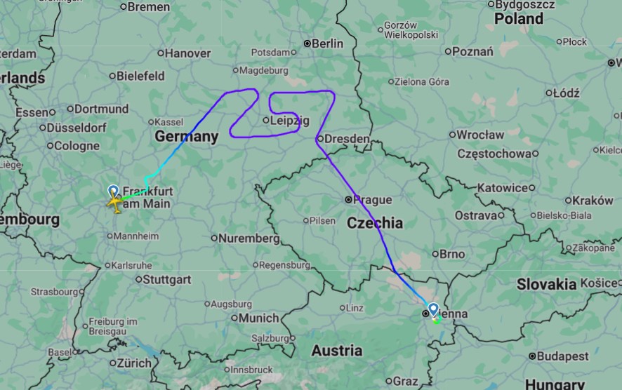 Às 16:16, horário local, o Boeing 757-300 de 25 anos tocou a pista 07C de Frankfurt, fechando o capítulo de 35 anos de voos comerciais do 757 operados pela companhia. Novamente, como em Viena, os caminhões de bombeiros do aeroporto formaram um arco com os canhões de água enquanto os passageiros acenavam com bastões luminosos amarelos e aplaudiam com nostalgia.