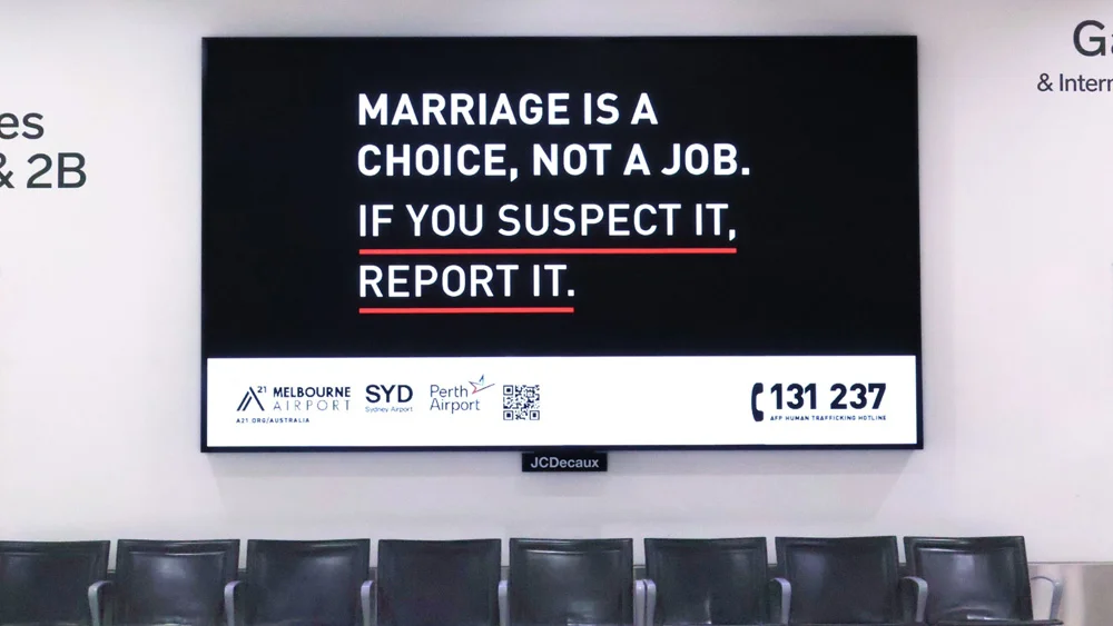 Telas digitais e outdoors nos aeroportos de Sydney, Melbourne e Perth exibirão a campanha ao longo de novembro, com mensagens que lembram os viajantes: “Se desconfiar, denuncie.” Códigos QR ligarão a informações e vídeos que mostram como identificar possíveis situações de tráfico.