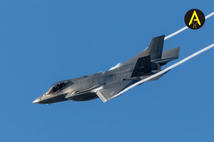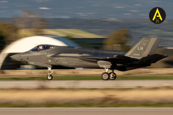 Um F-35A Lightning II da Força Aérea dos EUA durante a pausa antes do pouso. (Crédito da imagem: Stefano D’Urso/The Aviationist)