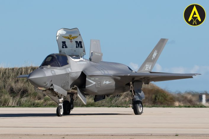 The Aviationist esteve em Amendola para o Media Day e o Spotters’ Day nos dias 5 e 6 de novembro, respectivamente, observando operações de voo, demonstrações de manutenção e o alinhamento multinacional de aeronaves de quarta e quinta geração que participaram da edição deste ano do exercício.